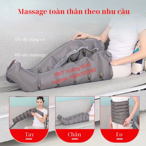 Sử dụng máy để nén khí vào các túi khí tạo áp lực lên vùng chân, tay và eo giúp thúc đẩy lưu thông máu và bạch huyết, tăng cường sự trao đổi chất và tuần hoàn máu trong cơ thể.