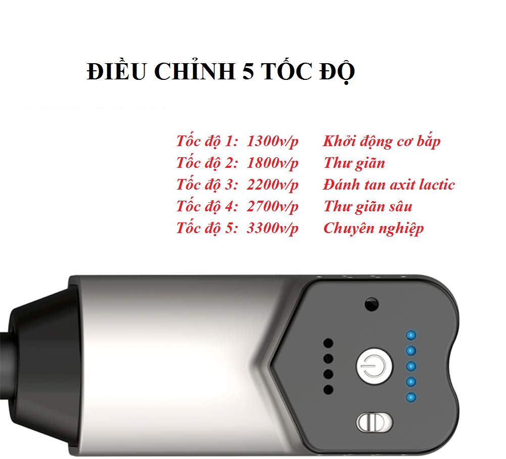 – Cường độ mát xa: 5 mức tốc độ mát xa